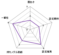 | 持ちメダル遊戯 | 3 | 32.8GとなっておりAT機ではふつうの部類です。 |